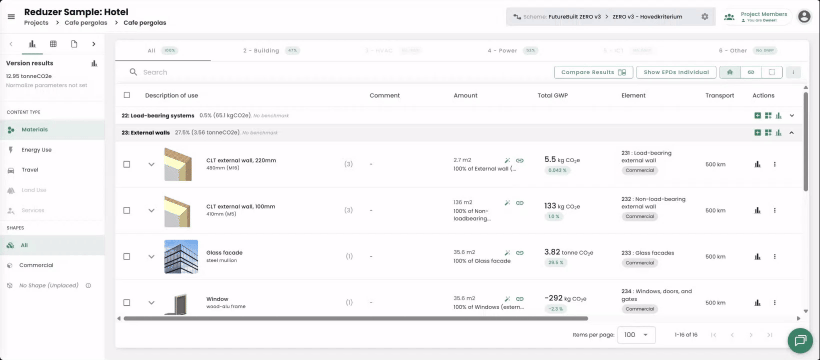 Reduzer's product and component library is in large parts based environmental information from EPDs.